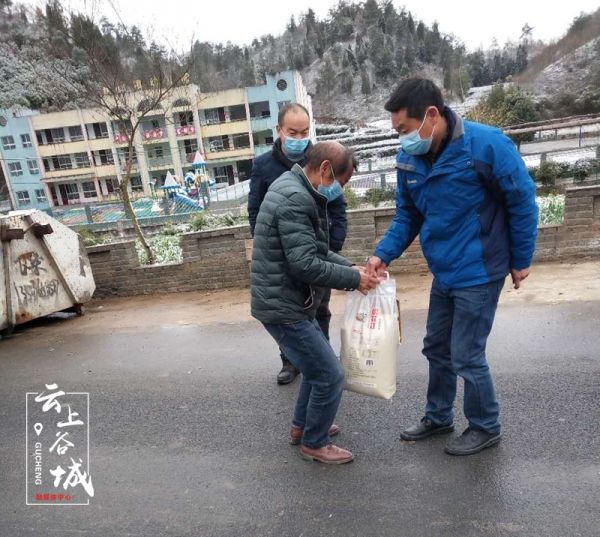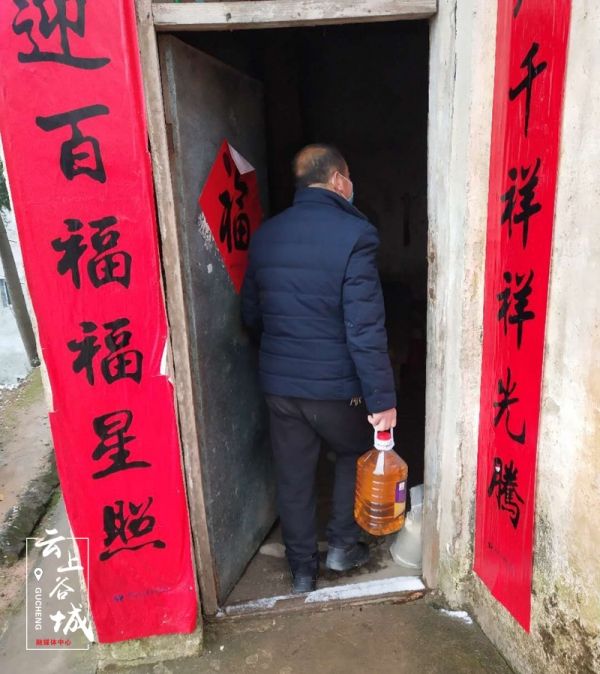 “老曾在家里吗?粮食还够不够?我们天天在这转,有啥需要及时说。”2月15日,五山闻家畈村党支部书记杨诗伟一行扛着米、提着油去看望曾凡武、杨春贵等特困供养贫困户,为他们送粮油、送温暖。