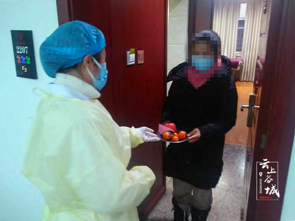 我们就是他们的家人 “现在把宾馆当隔离点用,以后还有谁敢来住?”当县里要求将所有密切接触者集中隔离时,镇防控指挥部提出将宾馆拿出来作为留观点遭到了不少同志们的反对,这一举措无疑是创新而大胆的。 “我们只要按规定做好消毒就行了,留观的老百姓们本来内心就是不安和焦虑的,又要远离家人和熟悉的环境,宾馆设施齐全,管理方便,既能给群众们舒适的生活环境也能方便我们政府及时跟踪管理留观人员的动态。他们现在被要求隔离,我们就是他们的亲人!”最终,李清哲力排众议,做通了所有人的工作,在全县第一个征用宾馆作为集中隔离场所。 李清哲提议做好隔离的同时要注重对密接者的心理疏导。集中隔离人员每天都能够收到一份伴着温暖话语便签的果盘。他们真真切切感受到政府的关爱。