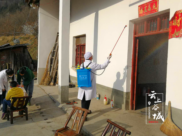 3月5日一早,赵湾乡卫生院院长罗天文、油坊村书记谭正洪第三次来到贫困户陈某家里进行消毒消杀工作。住户陈某是三天前从北河卫生院接回来的精神障碍患者,居家隔离后每天都会有工作人员来进行病情监控、消毒消杀、体温测量等工作。