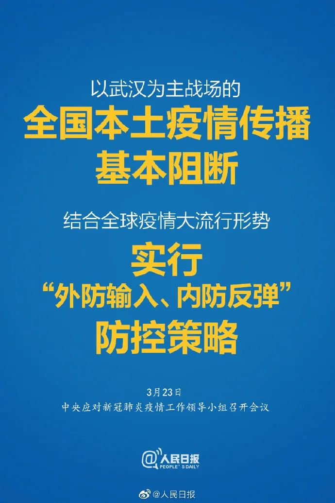 23日,中央应对新冠肺炎疫情工作领导小组召开会议,部署“外防输入,内防反弹”和有序推进复工复产相关措施。