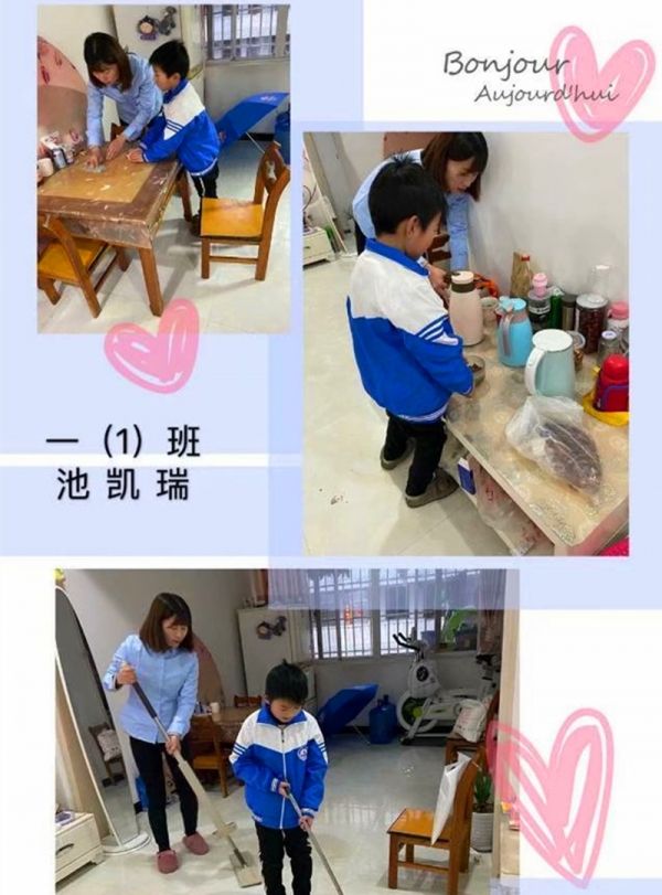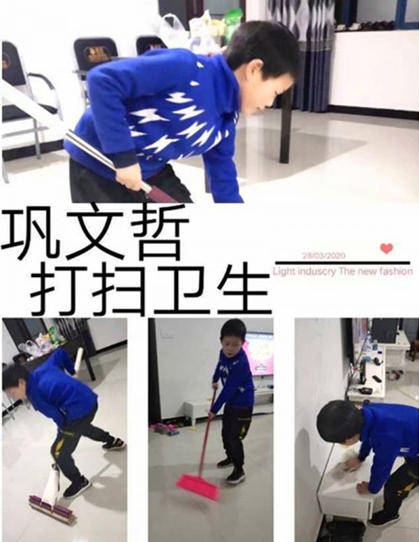 认真的打扫卫生,孩子们都很熟练,和爸爸妈妈一起劳动,亲子互动,在劳动中增进感情,锻炼孩子的劳动能力、协调能力。家长耐心的指导孩子如何有条理的劳动:做饭、炒菜、叠衣服……样样行!看我像不像一个环保小卫士?我是少先队员,我劳动,我快乐! 爱国卫生人人参与,文明新风人人传承。让我们齐心协力,共同战“疫”,小手拉大手,一起向前走。