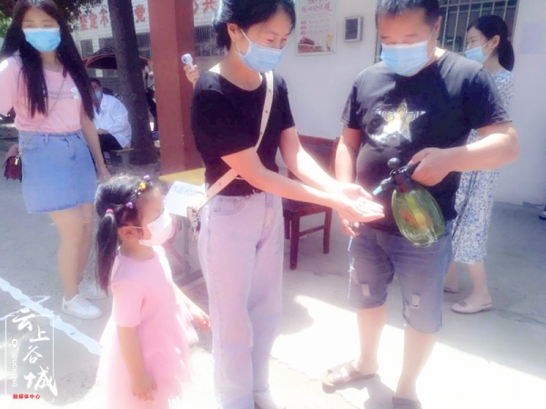 演练时,扮演幼儿的老师们在班主任老师的组织下,按幼儿每天在园学习、生活的顺序,对入园、测体温、进入教室、上课、早操、自主游戏、就餐、午休、午检、上厕所、离园、消毒等环节进行全程演练。整场演练紧张有序,各个环节配合密切,为安全有序复学提供了保障。