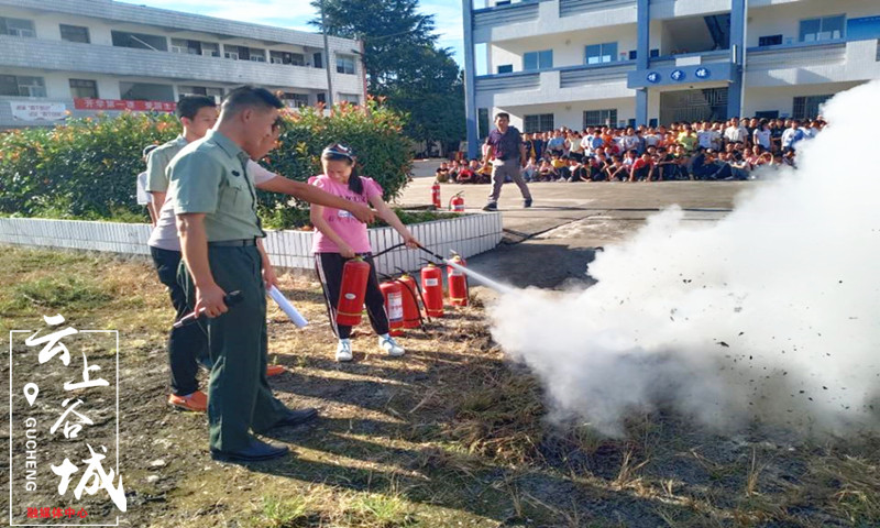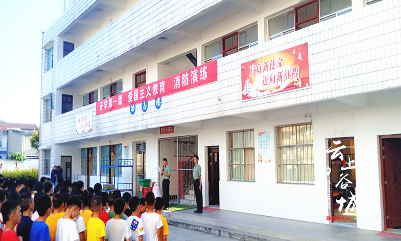 9月1日下午,言正教育义工服务队退役军人走进谷城县五山镇二中,给学生上了一堂别开生面的“开学第一课”——组织开展爱国主义教育和消防演练活动。