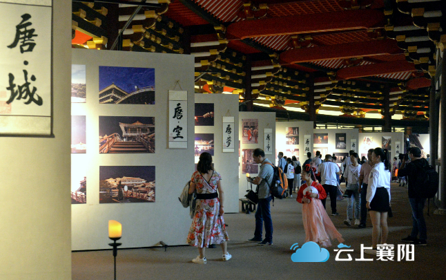 爱国方阵游行结束后,“游一回唐城,当一回唐人”中国唐文化摄影展《唐•》开幕仪式在唐城环殿举行。