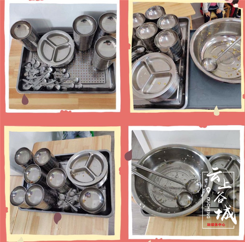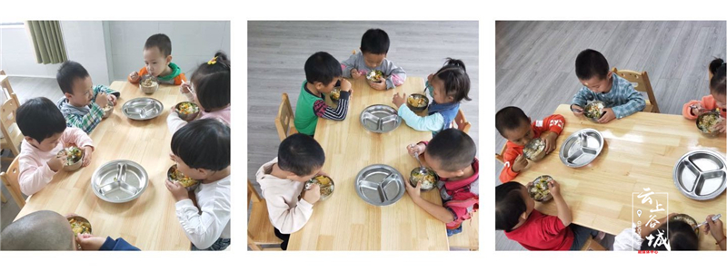 用餐后,耐心等待,碗里净、桌面净、身上净、地面净。