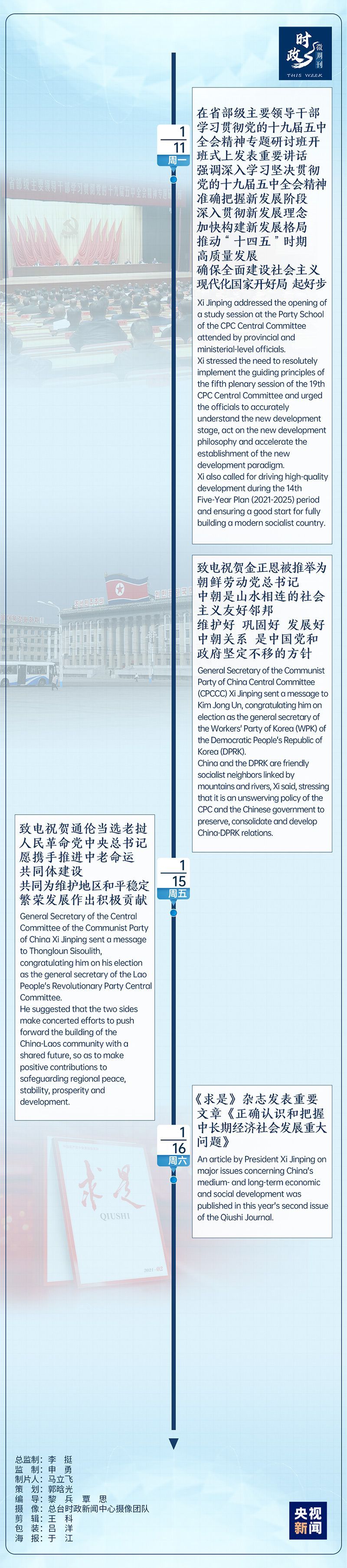 总书记的一周(1月11日—1月17日) 发布日期: 2021-01-18 字体:【大 中 小】 视频:时政微周刊丨总书记的一周(1月11日—1月17日)来源:央视新闻客户端 来源:央视新闻客户端 中国新闻网 责任编辑:严华萍 作者:云上谷城 【关闭本页】 【打印本页】