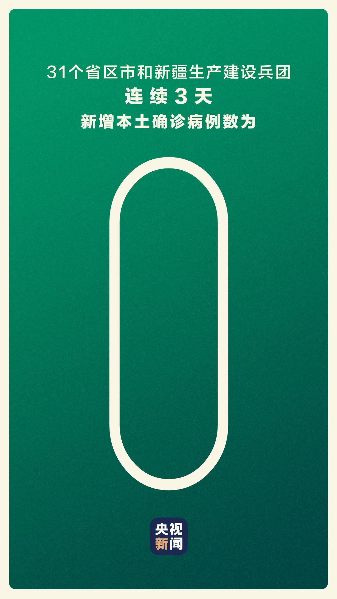 2月9日0—24时,31个省(自治区、直辖市)和新疆生产建设兵团报告新增确诊病例14例,均为境外输入病例(上海6例,浙江3例,天津1例,江苏1例,福建1例,四川1例,陕西1例)。31个省(自治区、直辖市)和新疆生产建设兵团报告新增无症状感染者7例(均为境外输入)。 2020年12月17日以来,31个省(自治区、直辖市)和新疆生产建设兵团连续三天无本土新增确诊病例。