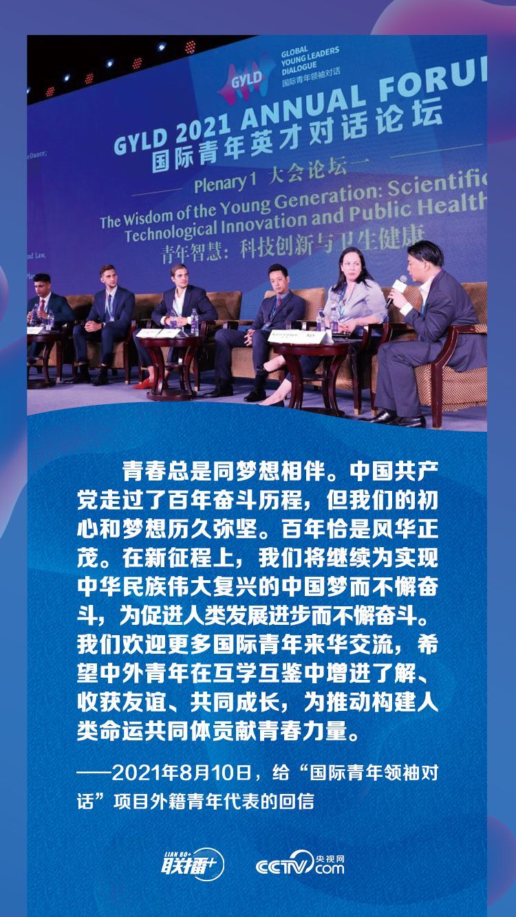 “我们欢迎更多国际青年来华交流,希望中外青年在互学互鉴中增进了解、收获友谊、共同成长,为推动构建人类命运共同体贡献青春力量。”8月10日,中共中央总书记、国家主席习近平给“国际青年领袖对话”项目外籍青年代表回信。 “世界的未来属于年轻一代。全球青年有理想、有担当,人类就有希望,推进人类和平与发展的崇高事业就有源源不断的强大力量。”近年来,习近平主席多次给外国青年回信,鼓励中外青年加强交流互鉴、增进相互理解、发展长久友谊,携手为促进民心相通、推动构建人类命运共同体贡献力量。 8月12日是国际青年日,央视网《联播+》特梳理习主席相关回信,与您一起重温习主席对全球青年的谆谆寄语。