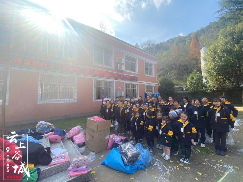 11月17日,谷城县盛康镇甘坪中心小学收到天津襄阳商会彭绍忠先生捐资1万元购买的暖冬衣物。包裹内的棉袄、棉鞋、棉帽、围脖和手套逐一分发到每一名学生手中。瞧,孩子们穿上冬服多开心!