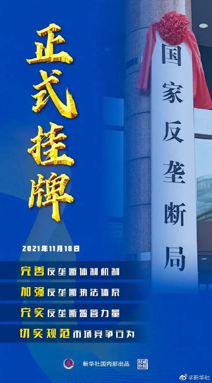 今天(11月18日),在国家市场监督管理总局办公大楼,国家反垄断局正式挂牌。