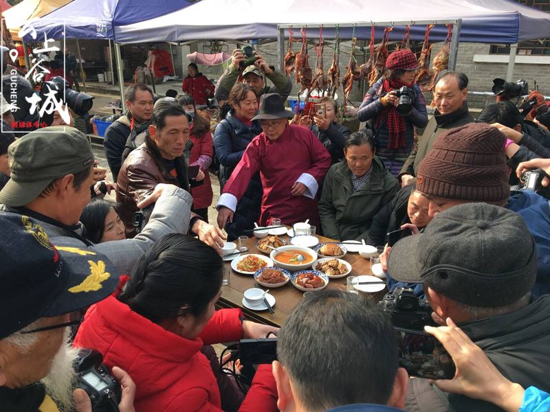 需要说明的是以上四个蒸菜过去都是蒸两次,第一次蒸的时候是把荤菜反着码放在碗底,素菜在上面;冷却后,第二次蒸的时候,把碗倒扣过来,将素菜浸在第一次蒸出来的油水中。现在简化程序了,反着码放的,出笼时候倒扣过来;正着码放的,荤菜上素菜下。这四道菜最能反映主人家家境是否殷实,待客是否热忱,因此分量要充足,制作要考究,味道要地道。 蒸样米则选用上好的当年的糯米,本地种的高秆糯米更黏稠,优于杂交糯米。将糯米洗净泡半天,然后装在泥巴碗里,还可以在上面摆上几颗红枣或者蜜枣上笼蒸熟。出笼后趁热在上面撒一大把白糖,条件好的上面调蜂蜜,这道菜象征生活甜蜜。 蒸豆泡是豆泡码上面,下面垫上粉条和白菜。这道菜关键在于豆泡制作,豆泡的制作在五山有两种做法,直接将豆腐改小方块油炸成金黄的称为素豆泡;荤豆泡选用石磨豆腐捏碎,拌入里脊肉末、肥肉末及少量白菜萝卜碎丁,佐以葱姜蒜末,调味后撒少量淀粉,挤捏成拇指状,再压扁,下八成热油锅炸制外表微黄,因还要上蒸笼蒸二十分钟,不可煎炸过度。当地的菜籽油或山茶油为首选。选择的白菜最好是卷心白,青白菜蒸熟后发黄发暗,不美观。 豆芽在喜宴上是头道菜,上桌后放在下席,表示从下面生根。豆芽寓意亲朋好友根根绊绊(方言:错综复杂的关系)。黄豆芽最好,绿豆芽次之。一般都是凉拌,鲜有现炒。豆芽洗净,然后焯水,投凉水回凉,沥水之后调味,功夫都在焯水的火候和调味品的制作。一般适量加入葱花、胡萝卜丝点缀。好的豆芽酸辣适中、清爽脆生。 酸汤为压轴菜,一般在稀薄的淀粉汤中加蛋液和麻叶,然后调味淋入香油。一是象征人生充满酸甜苦辣,二是表明主人家把汤汤水水都端出来,再无其他菜可上。酸汤不可上得过早,否则有催客之嫌。 五山八大碗可以追溯到清代五山乡间名厨“刘一手”刘进堂,堪称一代宗师,他的徒弟卢咆匠继承并将其厨艺发扬光大,他们组织了同行,确定了八个必备菜,组成“五山八大碗”,至今已经传承了百余年,第六代传人有卢会祥、李伦吉、艾元平等人。 作者:杜权成 来源:五山镇中心学校 责任编辑:翟竞