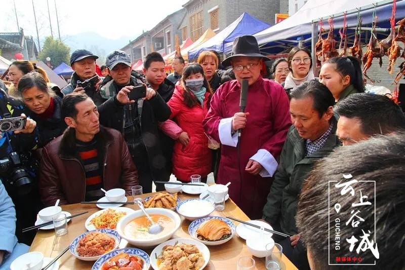 谷城县五山镇是湖北知名茶乡,这里地处谷城、丹江口、房县交界地带,生活习俗深受三地影响,较之周边乡镇,具有一定的独特性。红白喜事,有八道固定的菜,被称作“八大碗”。传统的“八大碗”包括粉蒸肉、“梳子背”蒸肉、三角炖蹄、蒸排骨、样米、蒸豆泡、豆芽、酸汤八道菜。现在,五山文化研究会积极倡议老厨师开展“传帮带”,挖掘、整理并普及“八大碗”,作为乡村体验的重要内容,受到游客欢迎。五山八大碗是谷城县非遗项目。 粉蒸肉一般用五花肉,大约一斤,切成长方形块状,一般10到16块,用红曲米制作的蒸肉粉包裹肉片码盘,下面是红小豆,做甜味的调味时糖多盐少,上蒸笼后用柴火灶蒸两小时。如果做咸香味的,用红曲米蒸肉粉的时候,要选含辛香料较为充足的,胡椒、小茴香、香叶、花椒等味道很容易闻出来。 “梳子背”蒸肉也是五花肉片,竖着依次摆盘,从上面看像若干梳子背面排一起似的。这道菜下面垫酸菜,也要蒸两小时。最高境界是肉质酥烂,肥肉绵软,瘦肉不柴,夹着不散。这道菜适合牙口不好的老人。吸足油的酸菜也是极好的下饭菜。酸菜一般是农家用自种的芥菜做成的。将芥菜洗干净,沥干水分之后,切碎放进坛子,反复挤压实在,然后密封发酵半年而成。 三角炖蹄选用的是猪蹄肉,焯水后切成三角状,连皮带肉,肥瘦相间,调好味之后码放。下面配菜是竹笋、蕨菜干、小山芋、芸豆等。 蒸排骨,最讲究的是不要大骨,选用一根根的肋骨,剁成一寸半长,先轻轻焯水,然后沥干水分,再用酱油或者自制的黄豆酱调色,用葱姜蒜调味,也有将排骨提前煎炸再码放的,下面垫土豆、小山芋、芸豆、藕块、老南瓜、山药等任何一种配菜都可以。