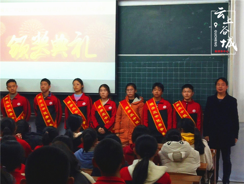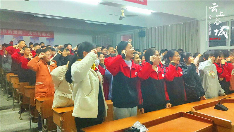 “用力才能成功,用心方能优秀。父母养育劳苦,老师教导辛苦,报恩惟有苦读!”莘莘学子们高举右拳,铿锵的誓言在阶梯教室久久回荡。这是近日谷城县城关三中九年级期中考试总结表彰大会上的一幕。