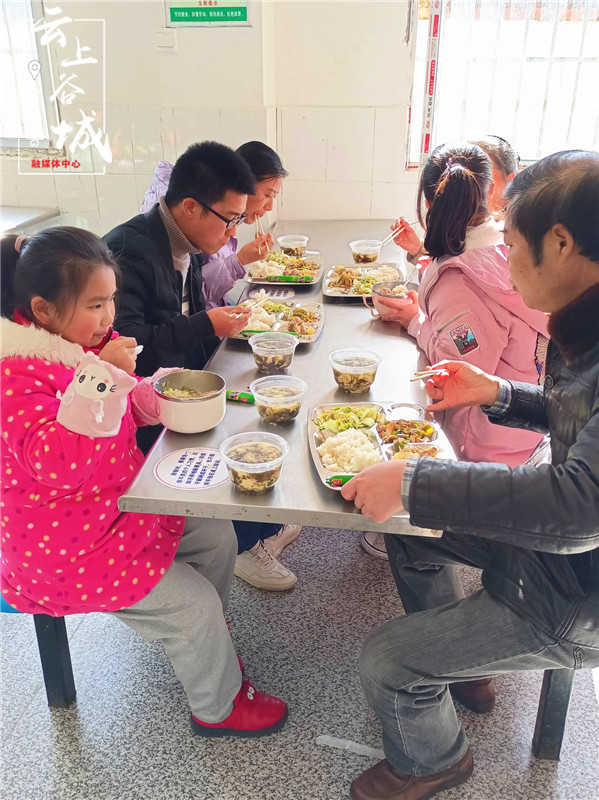 11月30日,谷城县庙滩镇南川中心小学开展家长免费与学生共进午餐活动。