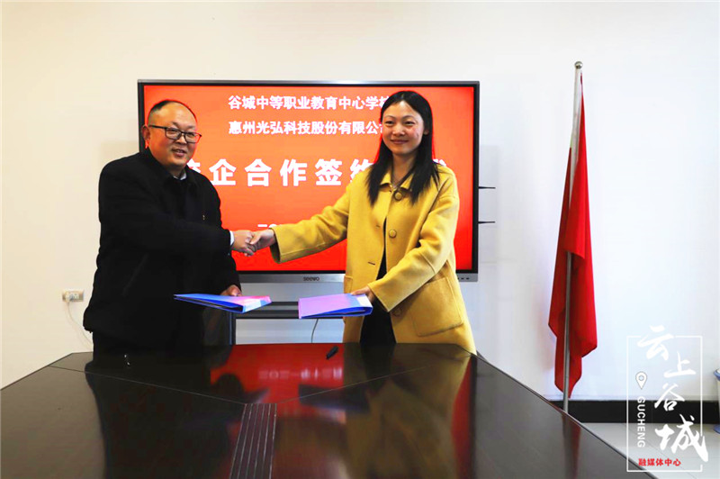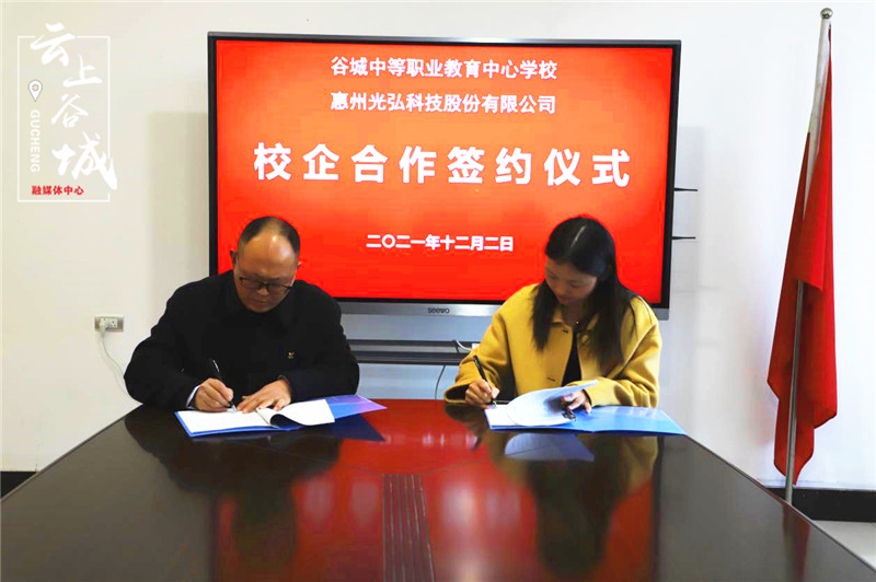 12月2日,谷城县职教中心与广东惠州光弘科技股份有限公司举行校企合作签约仪式,校企双方将共同建立机电技术、数控技术、电子技术应用专业“光弘科技”订单班,同时实行师资互派与培养,建立实习基地,以方便订单班学生实习和就业。