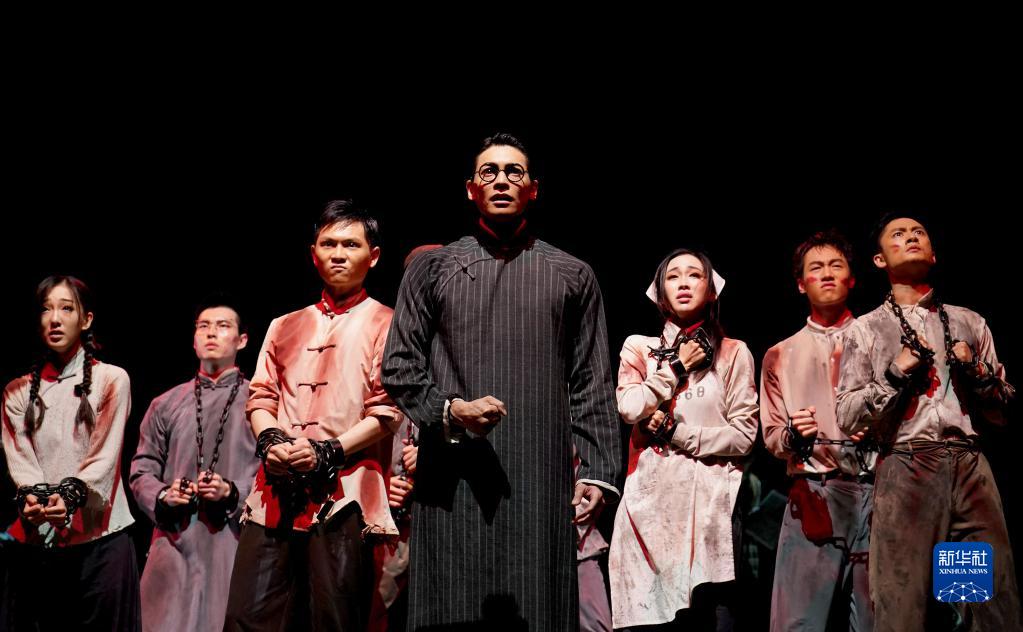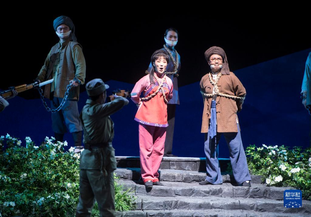 6月10日,上海歌舞团演员在上海国际舞蹈中心大剧场演出舞剧《永不消逝的电波》。新华社记者 任珑 摄 礼赞英雄——舞剧《永不消逝的电波》创新形式再现为我党民族解放事业而壮烈牺牲的英雄形象,被观众称为“又美又燃又好哭”;河北梆子《李保国》讲述35年如一日奋战在脱贫攻坚和科技创新第一线的感人事迹;复排民族歌剧《党的女儿》将革命精神表现得淋漓尽致。
