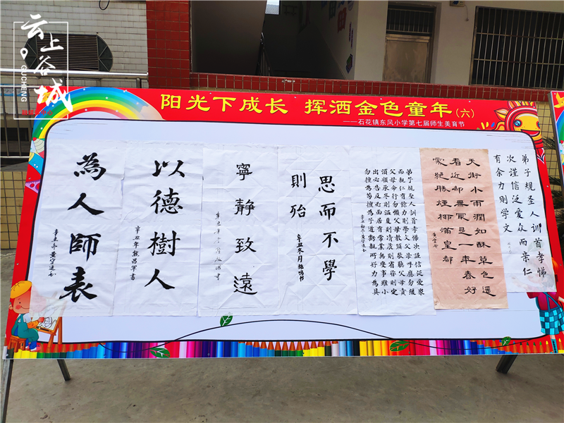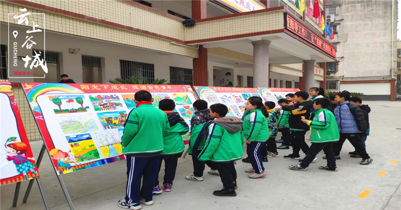 12月15日,谷城县石花镇东风小学举办“阳光下成长,挥洒金色童年”美术作品展。