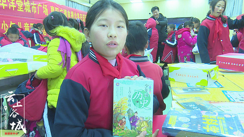 学生刘盛芳高兴地说:“今天,襄阳电视台和华洋堂的叔叔阿姨们,给我们送来学习用品,非常感谢他们!”