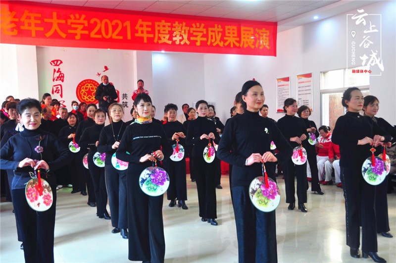 12月21日上午,谷城县城关镇老年大学举办2021年度教学成果展演。