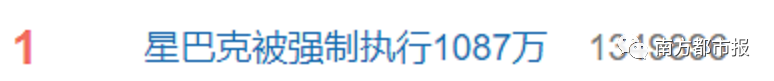 半个月前出现食安问题的星巴克,又因租赁合同纠纷被强制执行标的。 今天(12月27日),南都记者透过天眼查注意到,广东星巴克咖啡有限公司新增一条被执行人信息,执行标的达1087万余元,执行法院为广州市天河区人民法院,关联案件为租赁合同纠纷。 天眼查数据显示,该公司由港资企业星巴克咖啡餐饮(南中国)有限公司全资控股。 昨天 该事引发热议 相关话题冲上热搜榜第一 ↓↓