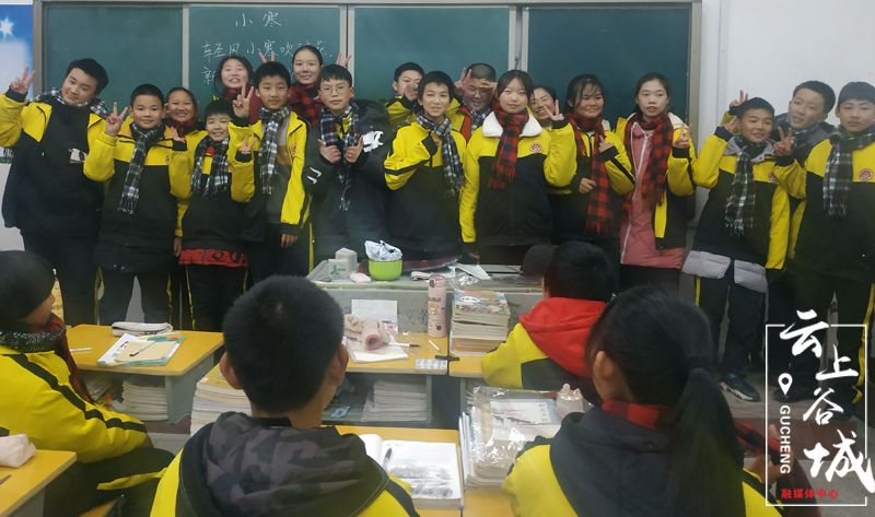 部分学生高高兴兴晒围巾 1月5日是小寒节,这个节气是一年中最冷的时间。在谷城县五山镇中心学校七三班教室里,暖意融融。该班语文教师、“荆楚楷模”杜权成为全班43名学生赠送了围巾。