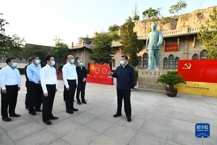 2021年9月13日至14日,中共中央总书记、国家主席、中央军委主席习近平在陕西省榆林市考察。这是13日下午,习近平在米脂县杨家沟革命旧址考察。 新华社记者 谢环驰 摄