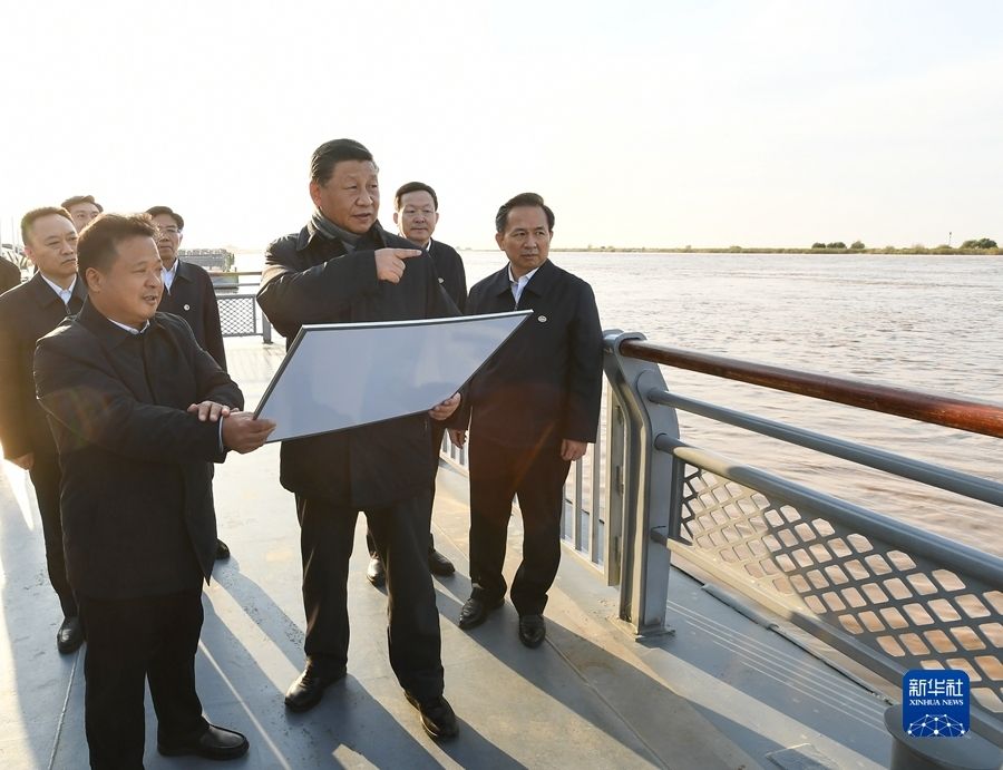 2021年10月22日下午,中共中央总书记、国家主席、中央军委主席习近平在山东省济南市主持召开深入推动黄河流域生态保护和高质量发展座谈会并发表重要讲话。这是座谈会前,习近平20日下午在东营市黄河入海口考察。 新华社记者 谢环驰 摄