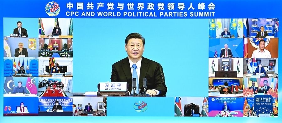 2021年7月6日,中共中央总书记、国家主席习近平在北京出席中国共产党与世界政党领导人峰会并发表主旨讲话。 新华社记者 李响 摄