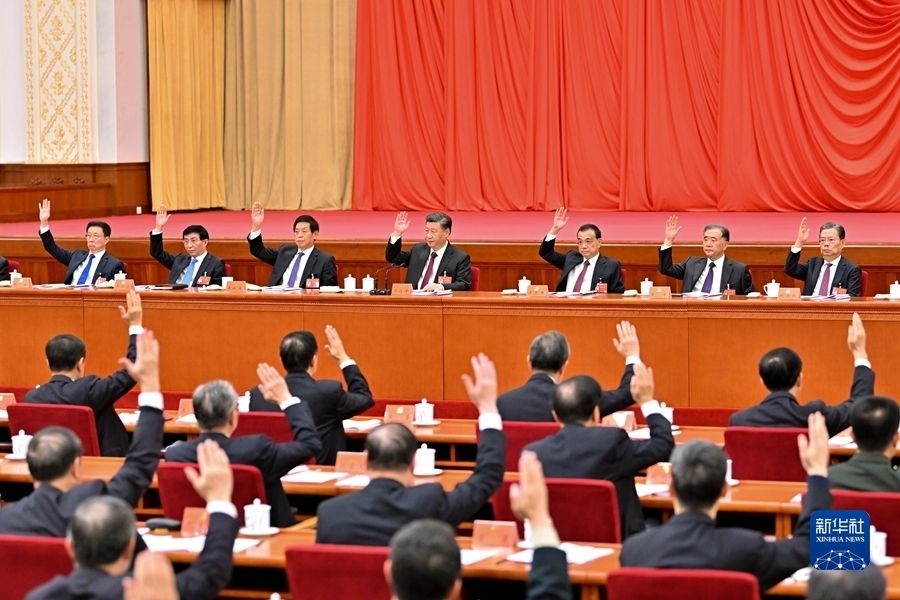 中国共产党第十九届中央委员会第六次全体会议,于2021年11月8日至11日在北京举行。这是习近平、李克强、栗战书、汪洋、王沪宁、赵乐际、韩正等在主席台上。 新华社记者 李涛 摄