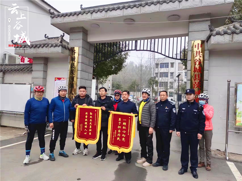 2月13日,襄阳骑行之友俱乐部为谷城县茨河镇人民政府、镇派出所、镇应急办送来“勤政为民勇担当、温馨救援暖人心”“一颗红心向党、勇于担当为民”两面锦旗,表达对茨河镇党员干部积极救援骑友的致敬和感谢。