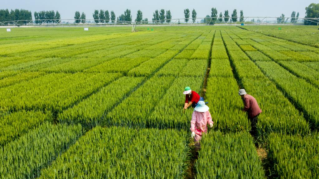 2021年5月12日,农民在河北辛集市马兰农场节水小麦田里劳作。(李秋华摄) 习近平总书记强调,节水,拧紧水龙头的事,是个等不得、拖不了的当务之急。 华北平原是我国小麦主产区,曾盛行“肥大水勤”的种植模式。其中,河北75%的地下水用于农业灌溉。长期超采,河北形成近7万平方公里地下水漏斗区,引发湿地萎缩、地面沉降等问题。 邢台宁晋县米家庄二村村民高现军,曾经为浇地费时费力费水而挠头。大水漫灌,每亩地浇一次要用水四五十立方米,不少水白白浪费。 2016年,宁晋县建设5万亩高效农田示范区,高现军的农田安装了喷灌设备,并推广水肥一体化等先进技术,现在种植小麦、玉米用水量不到原来一半。