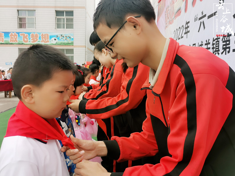 演出伊始,城关三中举行新生入队和新团员入团宣誓仪式,品学兼优的孩子们光荣加入中国少年先锋队和共青团,佩戴上鲜艳的红领巾和团徽。
