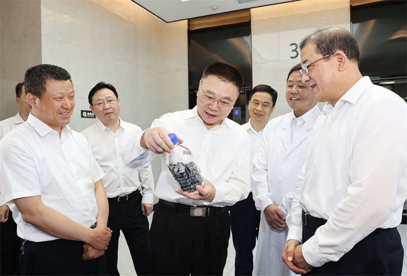 湖北三峡实验室是宜昌市政府联合企业、高校、科研机构共同建设的科研平台,聚焦磷石膏综合利用、微电子关键化学品、新能源关键材料等绿色化工关键核心技术进行攻关。王蒙徽走进实验室,察看研发成果,与实验室负责人和科研人员亲切交谈,仔细询问实验室建设运行及有关项目研究进展情况,鼓励实验室持续加强科研攻关,多出创新成果。王蒙徽强调,要用好湖北科教资源,结合我省产业转型升级战略需求,进一步明确“卡脖子”关键核心技术主攻方向和重点任务,坚持产学研用一体化,推动创新链和产业链深度融合。要创新体制机制,引进培育高端人才,建设一流创新平台,整体提升我省科技创新能力,更好服务经济社会高质量发展。