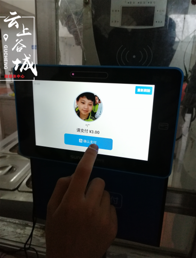 茨河镇中心学校校长张忠贵说:“智慧食堂启用后,我们学生排队点餐,刷脸点击确认支付按钮,3s快速结账,十分方便。”