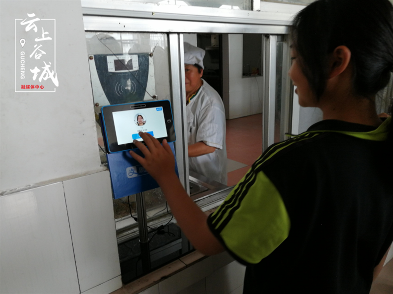 “我们学校食堂可以刷脸吃饭,再也不用担心卡丢了” ,谷城县茨河镇中心学校八年一班的学生熊思怡激动地和大家介绍。
