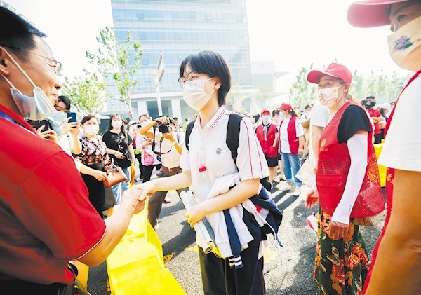 6月7日,武汉二中考点,送考老师和即将入场的考生握手,预祝考试顺利。(湖北日报全媒记者 柯皓 摄) 6月7日9点,伴着清脆的铃声,2022湖北高考开考,46万多学子迈入考场,挥笔写“妙手”。今年是我省“新高考”第二年,也是“双减”政策发布后的首次高考。 当天,国家教育统一考试厅际联席会议成员单位联合值班,联合指挥。省教育考试院考务指挥中心的大屏幕上实时监控省内各考点情况。在武汉二中、洪山高中、华科附中等多个考点,记者看到,交警提前上岗疏导秩序,还有铁骑提供应急保障。不少家长戴着印有“高考加油”字样的口罩,有的考生母亲身着红裙,为孩子祝福。 首日考语文和数学。开考后,作文题中的关键词“妙手”迅速登上热搜。 中午气温逐渐升高,有学校启用备用的手持式测温仪,增加阴凉候考处。各地都已提前准备好“清凉考场”,保证考生顺利应考。 从去年起,我省高考包括全国统一高考和高中学业水平选择性考试,考试科目设置为“3+1+2”。8日上午开考的是高中学业水平选择性考试首选科目物理或历史,考试时长75分钟,开考时间为9:00,考生不得提前交卷。 8日下午考外语,为全国统一高考科目,考试时长120分钟,开考时间为15:00。因外语考试有听力部分,所有考生务必在14:45之前入场完毕,14:45后禁止迟到考生进入考场参加当次科目考试。考生交卷出场时间不得早于外语科目考试结束前30分钟。 省考试院提醒考生务必牢记这些时间和规定,不要影响应考。 来源:荆楚网 责任编辑:冷晶晶 / 编审:严华萍