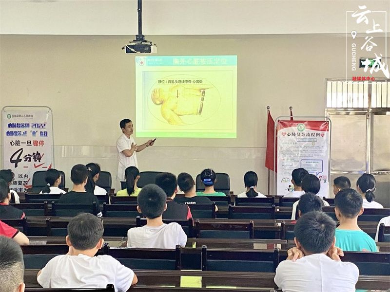 2022年6月1日至7日是第4个“中国心肺复苏周”,为增强学生们的健康意识,扩大急救知识辐射范围,推动谷城县第二人民医院胸痛中心建设工作落到实处,6月8日下午,谷城县第二人民医院到石花镇一中开展以“心肺复苏,成‘救’你我”为主题的健康知识进校园活动。