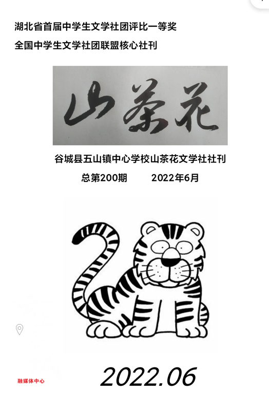 社刊封面 6月12日,休刊一年多的《山茶花》文学社刊复刊,48个页码,收录师生优秀习作50篇,累计5万字,湖北省作协会员杜权成担任责任编辑。本期为总第200期。