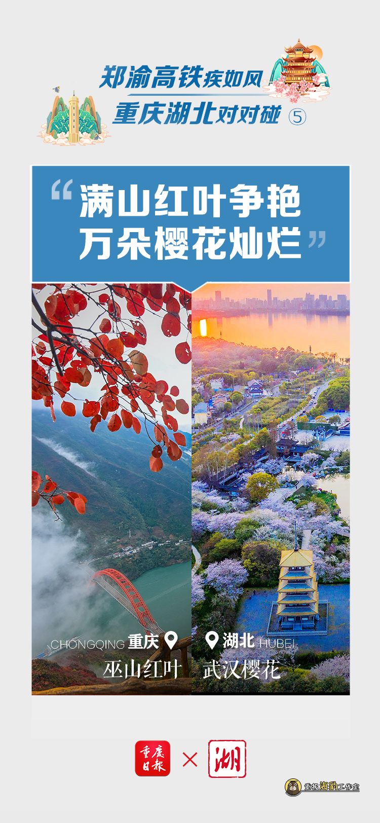 海报丨郑渝高铁疾如风 重庆湖北对对碰 发布日期: 2022-06-20 字体:【大 中 小】 郑渝高铁今日全线通车,疾如风,快如电!郑渝高铁,必经湖北。重庆、湖北山水相依、人缘相亲,随着郑渝高铁的开通,两地必将更加亲密。重庆日报客户端联动湖北日报客户端推出对对碰海报,带你打卡两地“地标”,看看哪些组合是绝配? 来源:湖北日报 责任编辑:房景智 作者:云上谷城 【关闭本页】 【打印本页】