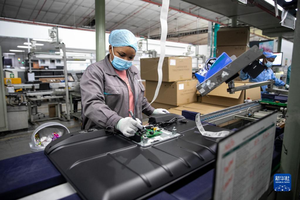 2022年6月1日,当地员工在南非开普敦海信南非工业园的电视机生产线上工作。新华社记者 吕天然 摄