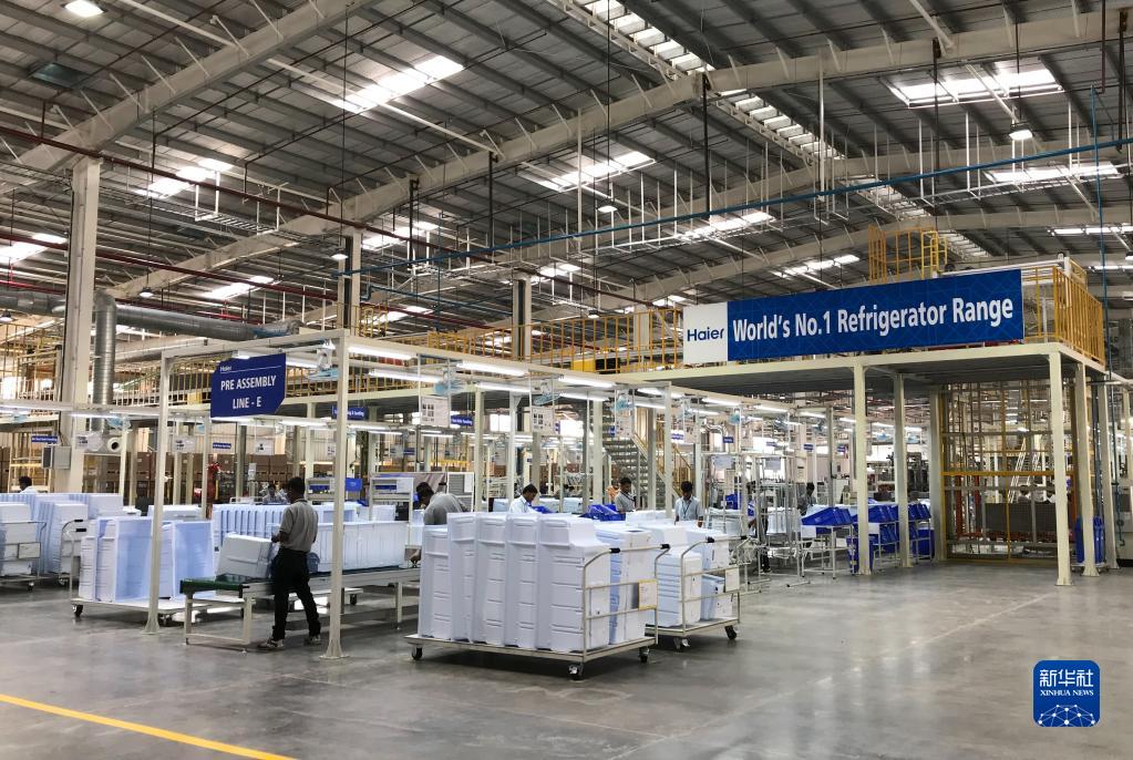 2017年11月16日,在印度浦那市,工人在中国海尔集团工业园厂房内工作。新华社记者 张兴军 摄