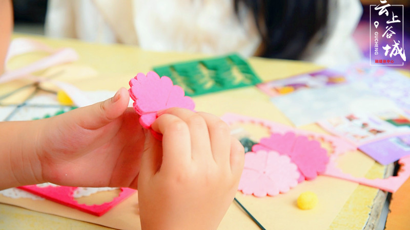 捧着制作好的手捧花,孩子们的脸上露出开心、幸福的笑容。活动中,志愿者还现场拨通留守儿童陈博远妈妈的电话,让两端相互牵挂的人在视频中得以相聚团圆。