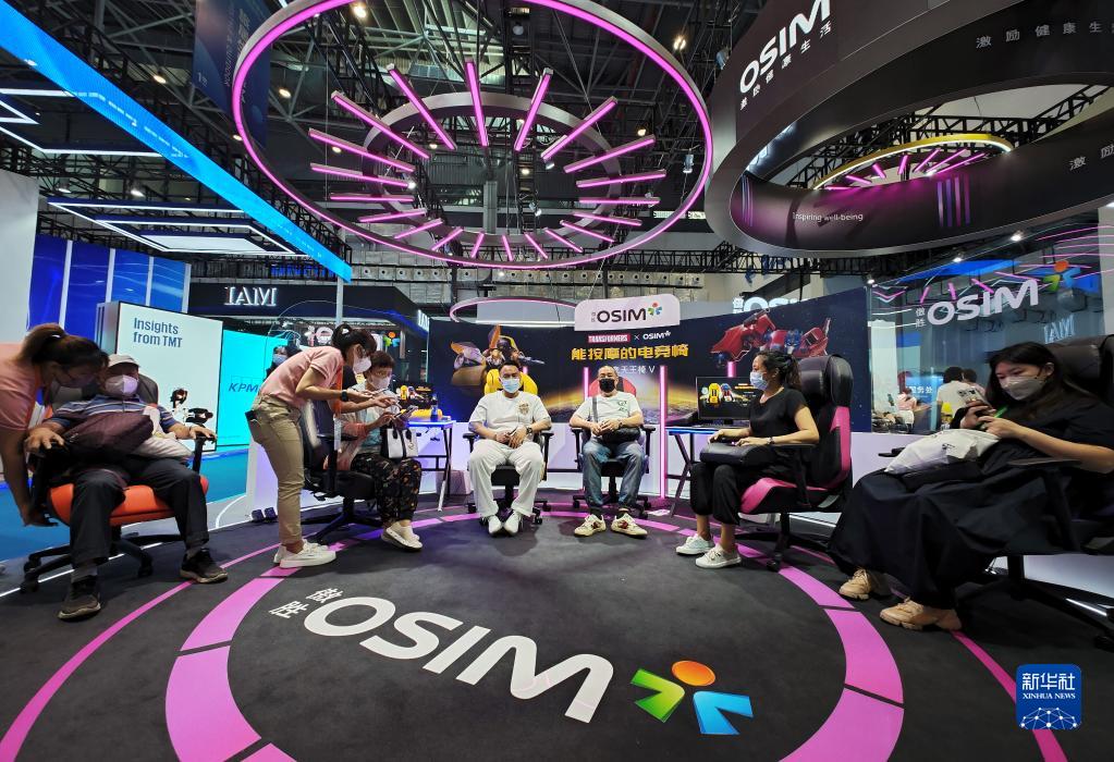 观众在第二届中国国际消费品博览会上体验按摩电竞椅(2022年7月28日摄)。新华社记者 郭程 摄 破浪前行,把舵定向。 在以习近平同志为核心的党中央坚强领导下,准确把握时与势,立足新发展阶段、贯彻新发展理念、构建新发展格局,坚定不移推动高质量发展,我国迈向现代化强国的道路更加清晰、步伐更加坚定。