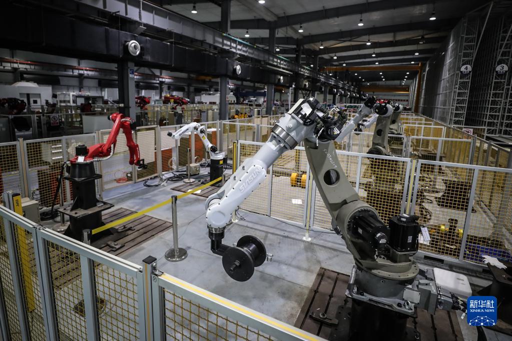 沈阳新松机器人自动化股份有限公司生产车间(2022年4月28日摄)。新华社记者 潘昱龙 摄 总书记指出:“全面建设社会主义现代化强国,实现第二个百年奋斗目标,必须走自主创新之路。要时不我待推进科技自立自强,只争朝夕突破‘卡脖子’问题,努力把关键核心技术和装备制造业掌握在我们自己手里。”