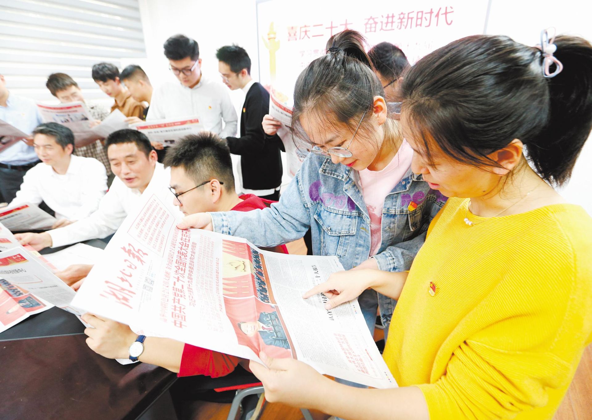 连日来,中国地质大学(武汉)地球物理与空间信息学院师生认真学习党的二十大精神。(湖北日报全媒记者 张鸿 通讯员 屠傲凌 摄) 思想是前进的动力。 11月9日,省委十二届二次全会审议通过《中共湖北省委关于认真学习宣传贯彻党的二十大精神的决定》,要求入脑入心全面学习,完整准确全面把握,真抓实干全面落实,切实把思想和行动统一到党的二十大精神上来,一步一个脚印把党的二十大提出的目标任务付诸行动、见诸成效。 连日来,荆楚大地掀起学习宣传贯彻党的二十大精神热潮,广大党员干部在学习培训、集中宣讲、新闻宣传等活动中,不断提高思想认识,强化责任担当,激发奋进力量。大家一致表示,要以党的创新理论武装头脑、指导实践、推动工作,为奋力谱写全面建设社会主义现代化国家的荆楚篇章贡献力量。 宣讲,向发展第一线延伸 11月12日,学习贯彻党的二十大精神省委宣讲团走进黄石,当地党员干部充满期待。 报告厅内,黄石市“四大家”领导、各县(市、区)主要负责人、市直单位和部分企业代表等86家单位120余人早早赶到会场。 “作为近代中国民族工业的摇篮,黄石是长江中游重要工业基地、华中地区先进制造业基地、武汉都市圈核心城市。如何把贯彻党的二十大精神与推动落实省第十二次党代会部署安排结合起来,坚持工业强市,打造产业高地,努力在湖北建设全国构建新发展格局先行区中走在前列?”与会人员充满期待。 “高举伟大旗帜,坚定中国道路,开启充满光荣与梦想的远征。”“着眼民族复兴,抢抓战略机遇,探索中国式现代化发展路径。”“发扬斗争精神,增强斗争本领,战胜一切可以预见和难以预见的风险挑战。”省委宣讲团成员、省经信厅党组书记、厅长刘海军全面解读党的二十大精神,划出七个重点,又结合工作实际,对黄石产业发展提出建议:“加快传统产业转型升级,加快战略性新兴产业培育壮大,加快数字经济与实体经济深度融合,以高端大气上档次的产业,支撑黄石建设武汉都市圈核心城市、长江中游城市群区域性中心城市。” 思想上共识、交流中共鸣,大家的思路逐渐打开。 “加快打造主力产业集群,为跃升城市能级提供支撑;支持企业专精特新发展,为扩大城市影响培育品牌;鼓励传统产业转型升级,为改善城市形象作出贡献;推动数字经济融合发展,为增强城市活力注入动能;强化武鄂黄黄产业协同,为彰显城市地位塑造优势……”会场的气氛,逐渐走向高潮。 连日来,像这样的宣讲报告会在我省多地陆续上演,省委宣讲团马不停蹄—— 11月7日,首场报告会在武汉市举行;11月9日,走进武汉铁路桥梁职业学院;11月10日,走进省委办公厅、省住建厅、湖北大学、华中科技大学;11月11日以来,先后走进团省委、省生态环境厅、省教育厅、鄂州市、中技国际工程有限公司…… 进机关、进企业、进高校。每一场宣讲,都推动着党的二十大精神直抵发展第一线、改革最前沿。 重任,在学思践悟中扛起 “经历‘两个一百年’的历史交汇期,也将参与全面建设社会主义现代化国家新征程,个体生命的黄金时期与民族复兴的伟大时代幸运交汇、同频共振,深感责任重大,使命光荣。”这是省人社厅职工养老保险处青年党员王宇写下的学习笔记。 通过深入学习领会党的二十大精神,王宇感受到,推动共同富裕进入历史新阶段,社会保障的再分配功能和为人民生活托底的作用将更加凸显,对社保工作也提出了更高的要求。新征程上,要切实提高思想认识,在群众工作中厚植宗旨意识,在改革创新中提升能力本领,尽心、尽责、尽力做好每一件事。 王宇的学习笔记,引起省人社厅团委的关注。日前,省人社厅开展“学习二十大 人社青年说”活动,将青年党员们的学习体会搜集汇总转发,激发全系统党员干部的学习热情,提升学习效能。 “从‘江山就是人民,人民就是江山’,到‘增进民生福祉,提高人民生活品质’,到‘不负时代,不负人民’,字里行间洋溢的是中国共产党满满的为民初心和民生情怀。”该厅农民工工作处青年党员吴璨说,要始终坚持“以人民为中心”的发展思想,把党的二十大报告关于人社工作的新部署、新要求落到实处,立足岗位职责,用心、用情、用力解决农民工急难愁盼。 在品读“高频词”中感悟初心使命,在历史“瞭望塔”上明确前进方向,在人生“坐标轴”上坚定价值追求。年轻干部们的集体心得,成为我省广大党员干部的共同心声。 “全面推进乡村振兴,坚持农业农村优先发展,巩固拓展脱贫攻坚成果。”宜昌市夷陵区乡村振兴局局长袁小虎反复学习党的二十大精神,结合省第十二次党代会部署,一条打造“鄂西版富春山居图”的工作思路逐渐清晰。 “以共同缔造理念打造乡村振兴样板,以防返贫动态监测和帮扶机制巩固脱贫攻坚成果,以产业、科技、品牌三大优势构建现代农业产业格局……”袁小虎说,重任在肩,时不我待。 新征程波澜壮阔,新蓝图催人奋进。连日来,在我省党员干部深入学习宣传党的二十大精神热潮中,还有千千万万个“王宇、吴璨、袁小虎”,不断在学思践悟中践行初心使命、强化责任担当、找准奋斗方向,为奋力谱写全面建设社会主义现代化国家荆楚篇章汇聚起磅礴力量。 从机关到基层,从青年到头雁,荆楚大地干事创业的气场持续升腾。 记者:邓伟 来源:湖北日报 编辑:邓植元丨审核:余运超