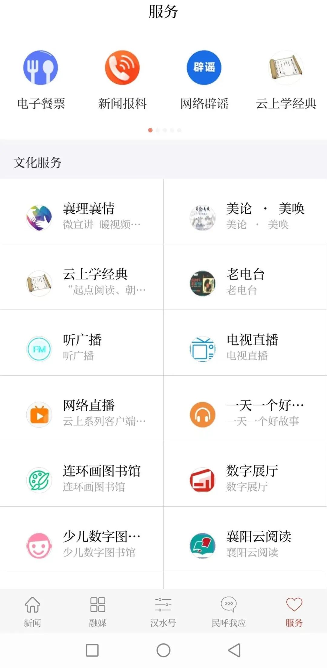 01新闻版块 “推荐”专栏将呈现每天最新鲜、最权威、最全面的本地资讯; “政情”专栏将成为市委市政府主要领导活动和政务报道的主要窗口; “直播”专栏每天都有精彩的网络直播活动展现; “评论”专栏将充分发挥主流媒体的引领作用; “视界”专栏将通过精美的摄影图片从不同角度去展现襄阳最美的一面; 还有“都市圈、汉江潮、产业、民生、文旅、教育”等各具特色的栏目,让您全面的了解襄阳。 02融媒版块 您可以看到襄阳广电的所有电视直播和节目回放,收听到实时的广播节目,观看到实时的融媒体直播。同时,也能随时查阅到襄阳日报、襄阳晚报当天最新的电子报纸。
