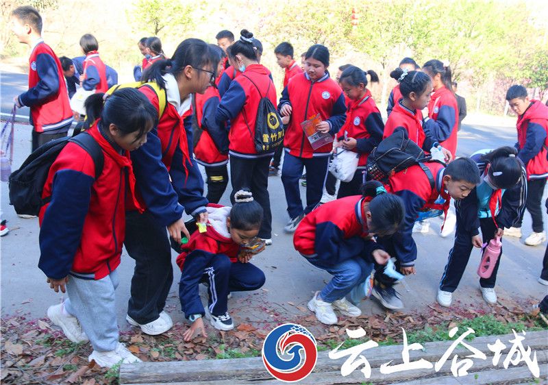 一个多小时后,大家徒步到达老君山村樱花谷景区。同学们一边欣赏樱花,一边自觉清理游客们丢弃的烟头、塑料袋、果皮等垃圾,用行动诠释“环境保护 从我做起”,让景区环境更美。