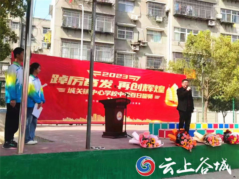 活动中,全体八年级学生整齐列队,意气昂扬。城关镇中心学校校长席伟代表学校向八年级全体师生作出战前总动员,希望大家“奋战一百天,取得一百分”,齐心协力、攻坚克难,创造城关镇中心学校新的辉煌。