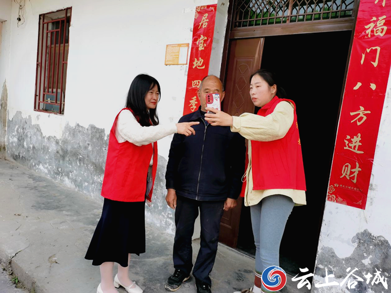 “王奶奶您好,我们来给您照相来了。”4月8日,谷城县城关镇老君山村“巾帼志愿服务队”志愿者来到腿脚不便老人王有莲家中,为她办理养老保险认证。