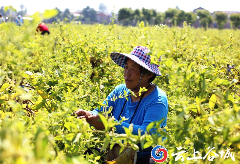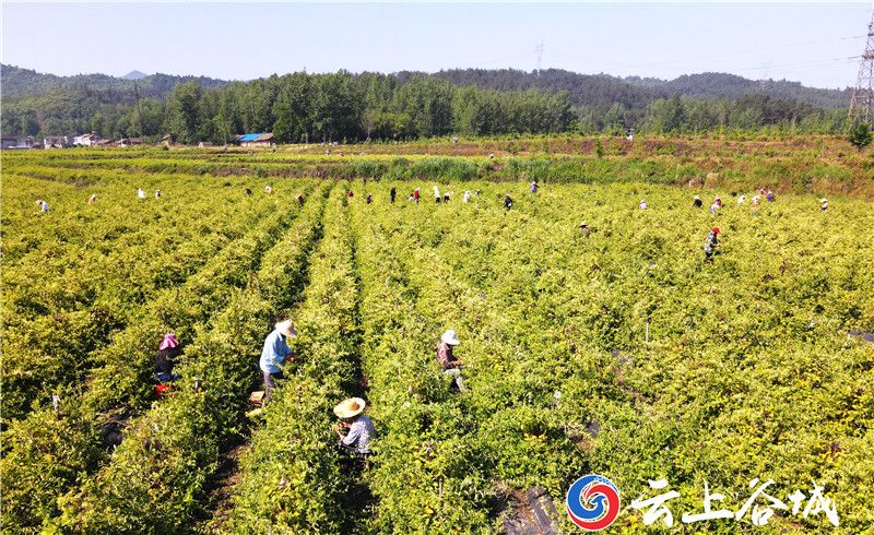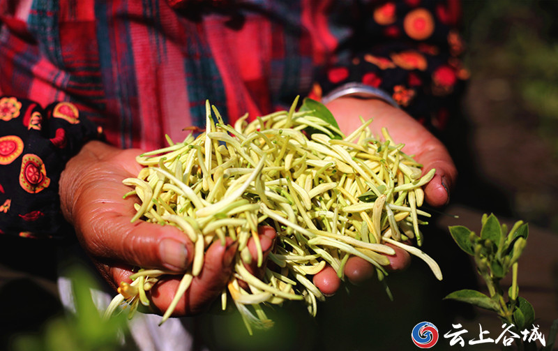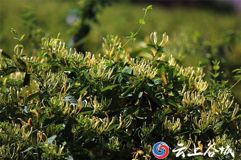 金银满坡应花农,绿波撒辉照田中。近年来,谷城县庙滩镇小河村因地制宜,大力发展以金银花为代表的中药材特色种植,带动当地农民持续增收,小小金银花成为小河村的“致富花”。